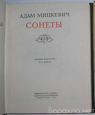 Первое издание "Сонетов" Адама Мицкевича появилось в Москве в декабре 1826 г. (Sonety Adama Mickiewieza. Moskwa, 1826). В настоящий том вошли, как первое издание, на польском языке, так и русское издание сонетов, в переводе В. Левика. В "Дополнения" включены: I. "Сонеты, не вошедшие в издание 1826 г.": "Поклонение", "Ястреб. На вершине Кикинеиз" и "Ответь, Поэзия! Где кисть твоя живая?"; II. "Сонеты Адама Мицкевича в русской поэзии", здесь приводятся переводы, сделанные в годы жизни польского поэта в России и цензурного запрета, и - выборочно, в наиболее характерных и значительных образцах, - переводы последующих лет. Настоящее издание дает, таким образом, широкую картину жизни "Сонетов" Адама Мицкевича в русской литературе - от их первого появления в Москве в 1826 г. и первых "переложений" на русский язык до современных переводов в исторической перспективе за сто пятьдесят лет. Издание подготовил С.С. Ланда. Содержит вклейки с иллюстрациями.